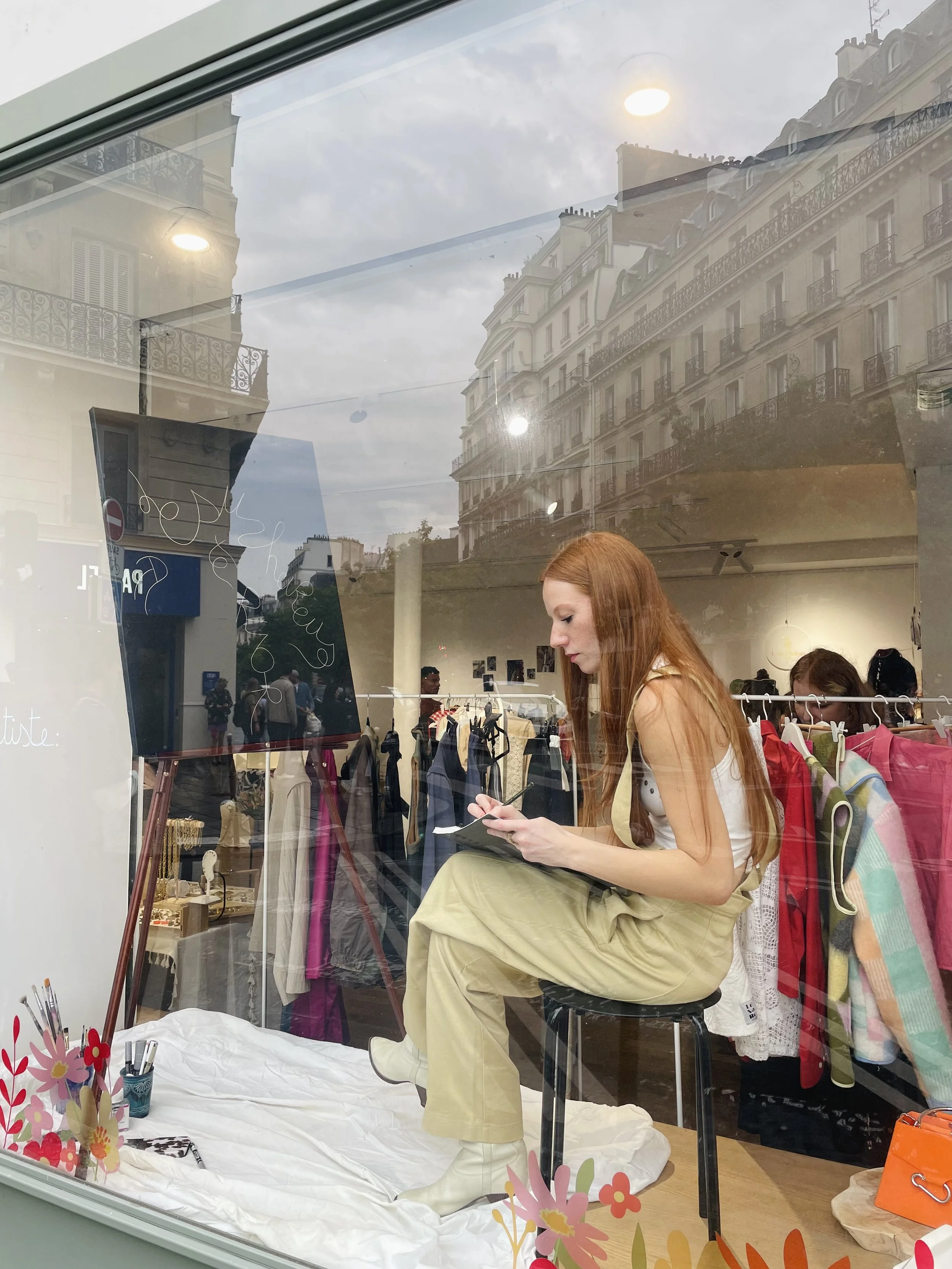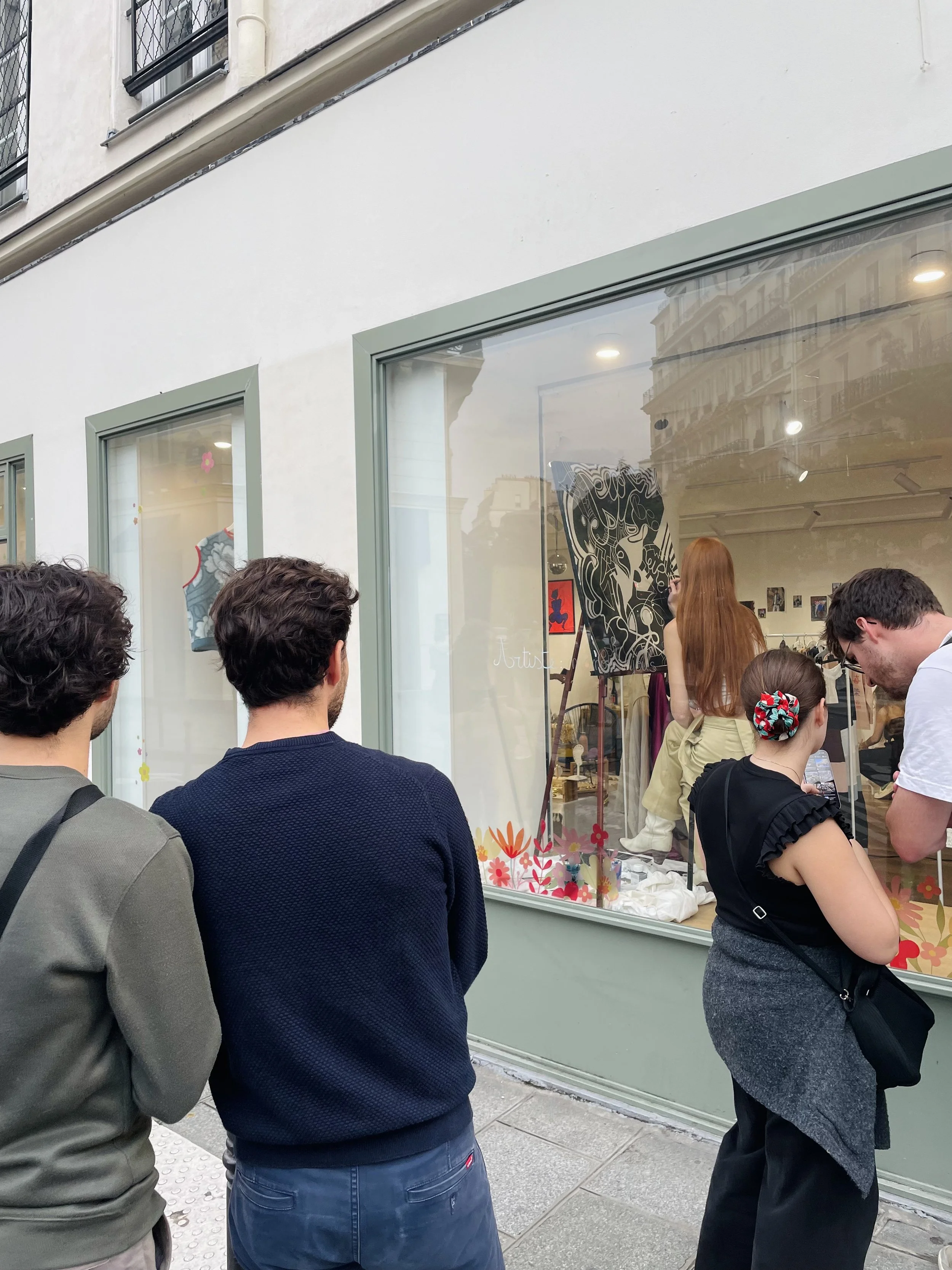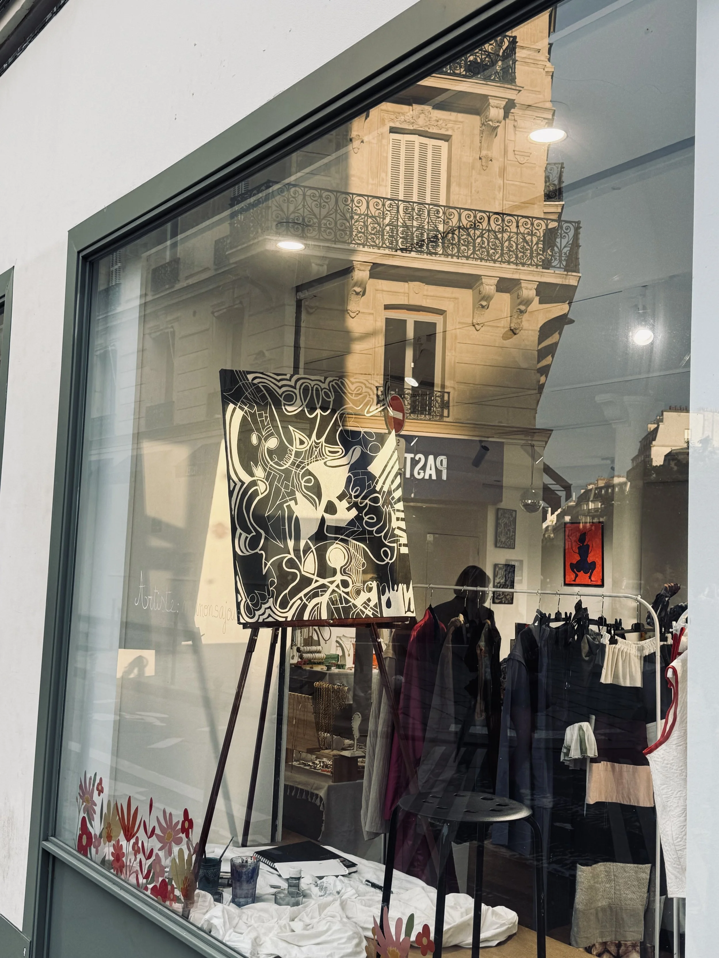 Une vraie sortie de ma zone de confort : moi qui ai l’habitude de peindre seule dans mon atelier, au calme, avec ma musique… cette fois, j’étais en public, entourée, dans un espace vivant.