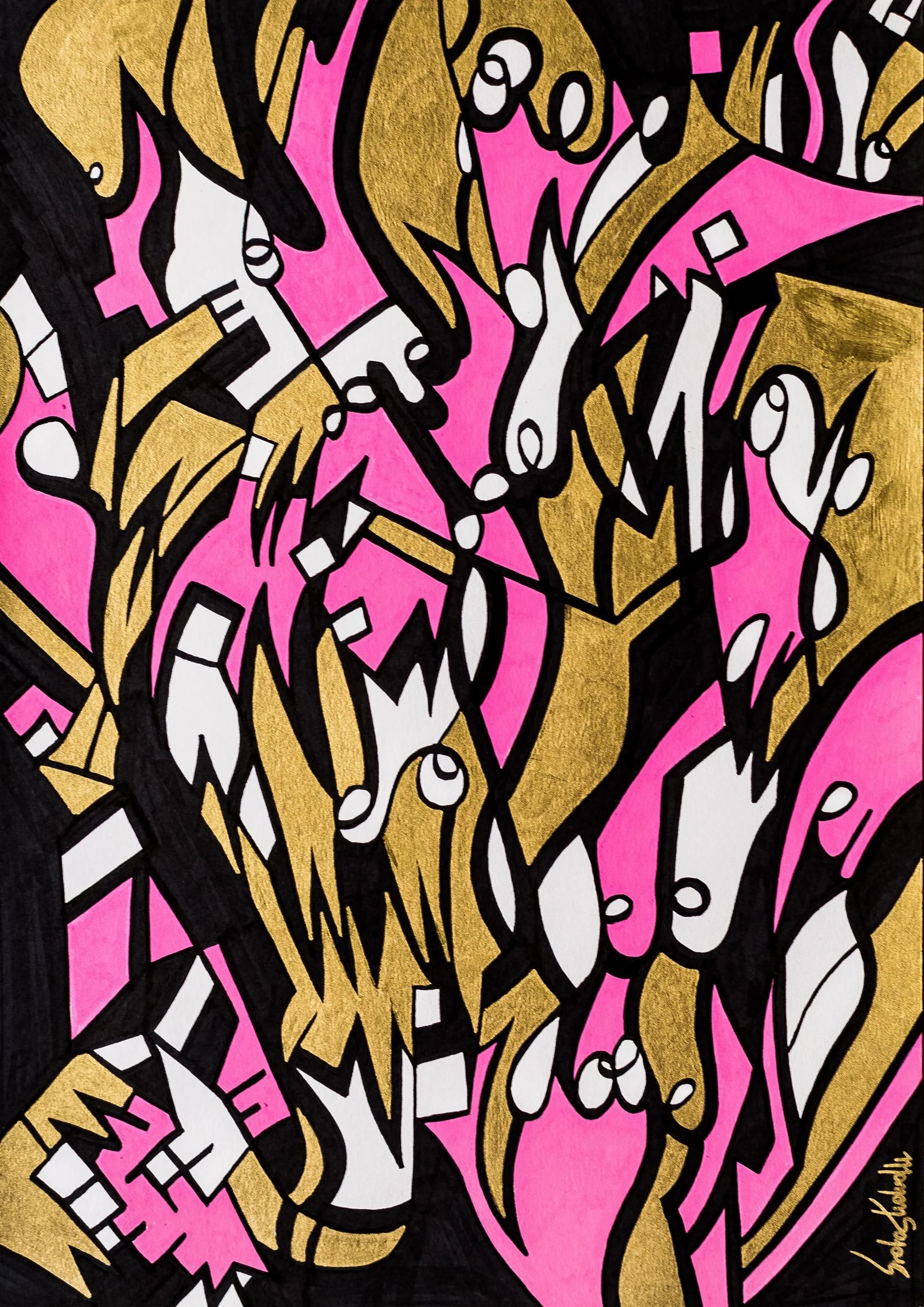 Les mots s’entrelacent pour former des grilles, où des formes secrètes prennent vie. Figures, visages et créatures émergent, créant une narration visuelle qui métamorphose les mots en un langage nouveau.