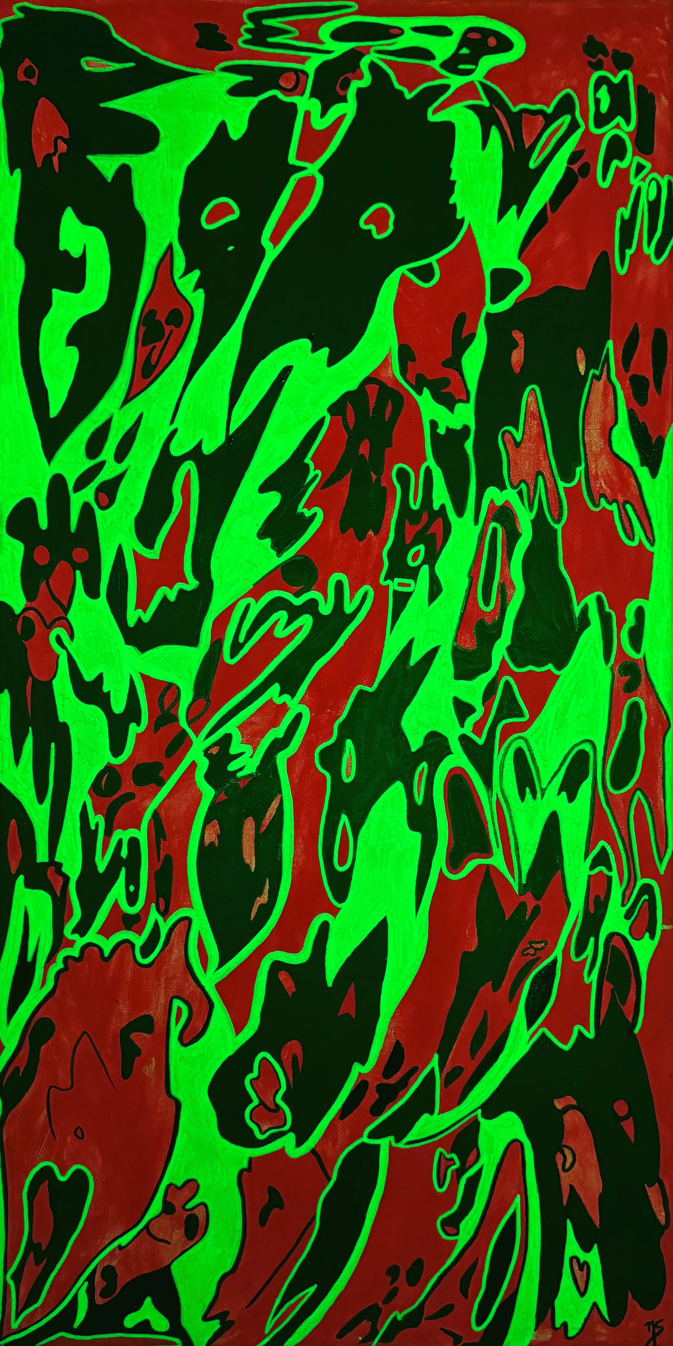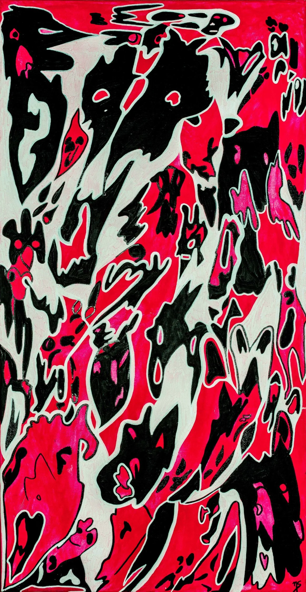 Le rose fluo, éclat de vie, a laissé place à une étrange danse. Fantômes et esprits surgissent, Ils vibrent et tournoient,